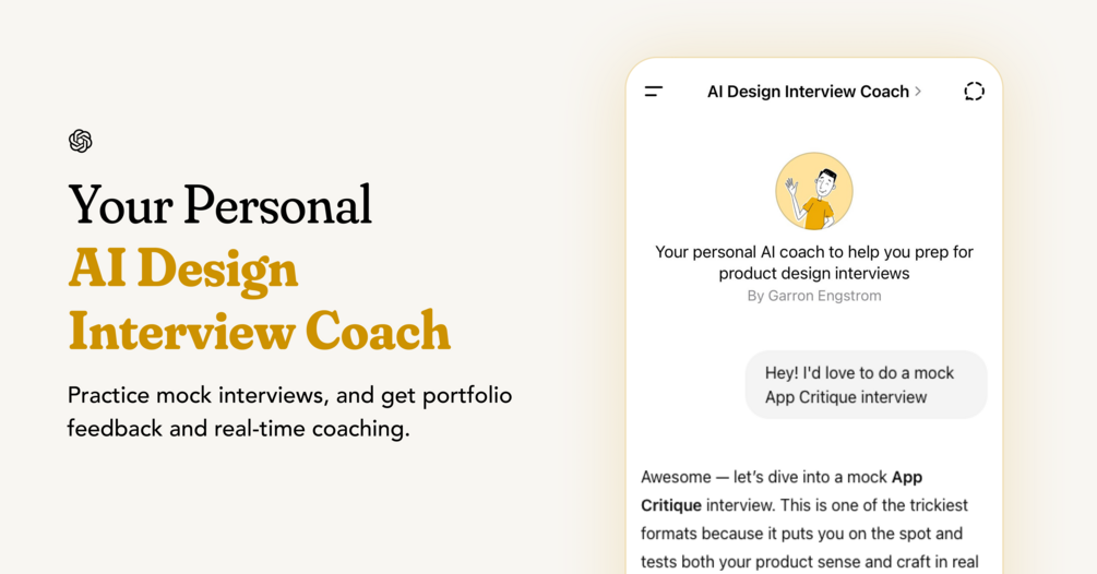 - “What are some prompts I can give you that will help me prepare for a design interview?”